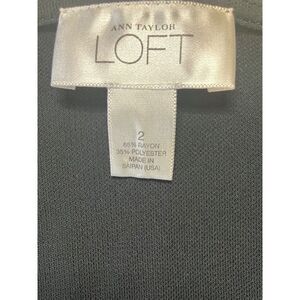 This Ann Taylor LOFT black sheath dress combines classic sophistication with modern versatility. Featuring a flattering deep V-neckline with faux wrap surplice styling and cap sleeves, this dress delivers polished elegance perfect for the office, interviews, or special occasions. Made in Saipan, USA, this piece represents quality American craftsmanship from LOFT's mid-2010s collection.