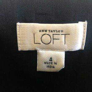 Ann Taylor LOFT Black Linen Floral Embroidered Strapless A-Line Dress