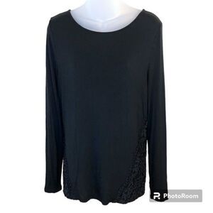 Ann Taylor LOFT Black Long Sleeve Top Size Large EUC Thin material, lace detailing on sides