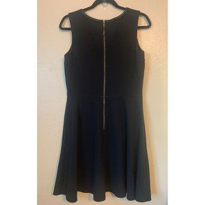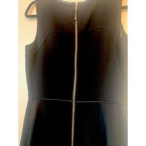 LOFT Black Rayon Blend Fit & Flare Sleeveless Dress Size 6 - 2 Front Pockets with leather look Piping Vtg. - a Basic - LBD Condition is "Pre-owned". Flat lay measurements: