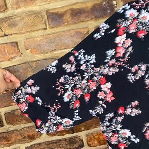 Ann Taylor LOFT Black Red Floral 3/4 Sleeve Open Front Blouse Women's Size XS/Small