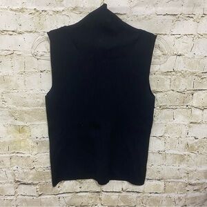 Ann Taylor LOFT Womens Medium Black Ribbed Stretch Mock Neck Sleeveless Top in excellent used condition. No stains, tears or rips.