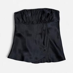 Ann Taylor LOFT Black Silk Strapless Milkmaid Peplum Babydoll Top 6/S