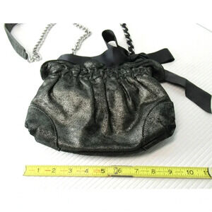 Ann Taylor LOFT Black Silver Leather Shoulder Bag Chain Strap Bow