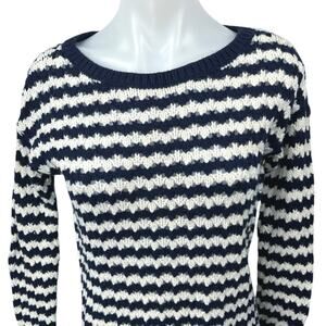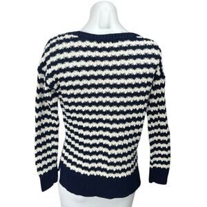 Ann Taylor LOFT Black White Striped Wool Open Knit Long Sleeve Sweater Top Sz S