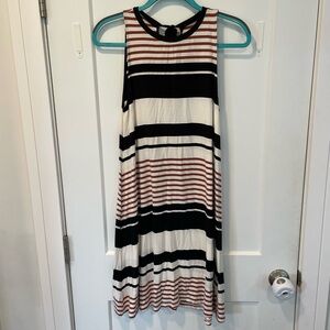 Ann Taylor LOFT Black and Brown Striped Sleeveless Swing Dress Women's Size Sm