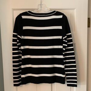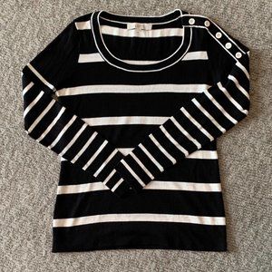 Ann Taylor LOFT Black/Ivory stripe sweater with Button detail - Size Small