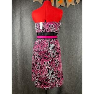 Ann Taylor LOFT Black-Pink-White Swirls Geometric Strap/Strapless Mini-Dress 12