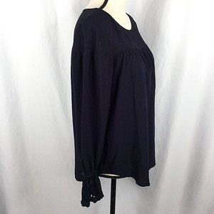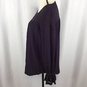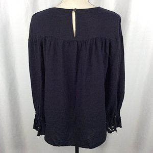 Ann Taylor LOFT Blouse Womens Size Small Ruffle Eyelet Cuff Embroidered Striped