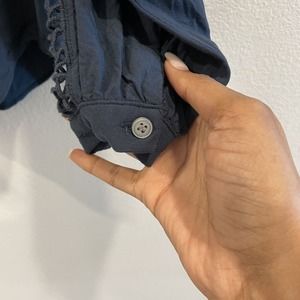 Ann Taylor LOFT Blouse Womens Small Rayon Arm Cutout Blue Long Sleeve