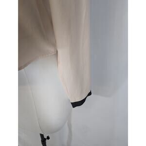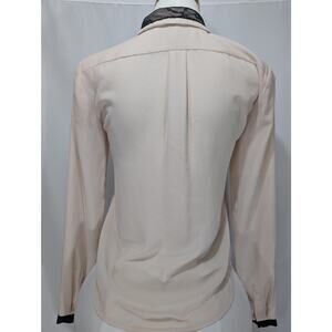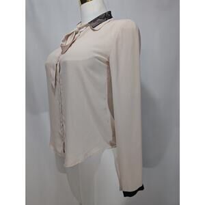 Ann Taylor LOFT Blouse XS Cream Black Lace Trim Bow Neck Long Sleeve