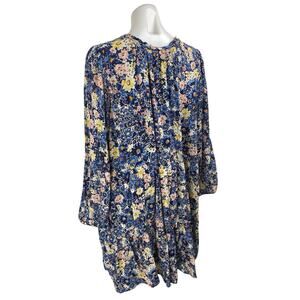 Ann Taylor LOFT Blue Floral Long Sleeve Tie Neck Tiered Midi Shirt Dress Size XL