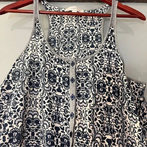 Ann Taylor LOFT Blue & Gray Floral Nautical 100% Cotton Romper Women’s L