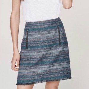 Ann Taylor LOFT Blue Tweed Zip Pocket Frayed Hem Skirt Sz 4