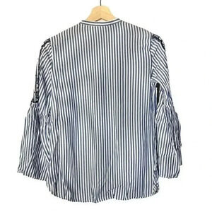 Ann Taylor LOFT Blue & White Stripe Embroidered Bell Sleeve Long Sleeve XSP