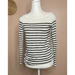Ann Taylor LOFT Boat neck embellished blouse Sz Small Striped Ivory Long Sleeve.