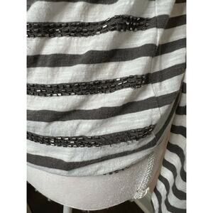 Ann Taylor LOFT Boat neck embellished blouse Sz Small Striped Ivory Long Sleeve