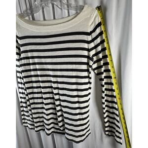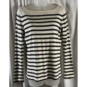 Ann Taylor LOFT Boatneck Long Sleeves Striped T-Shirt, Black/Ivory, Sz: M, 73-26