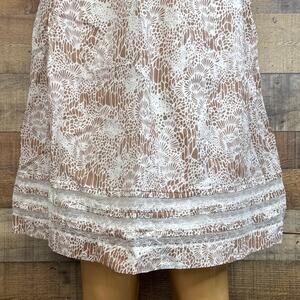 Ann Taylor LOFT dress. Size 8. Color ~ Brown and white. Lightweight dress. Spaghetti straps. Lined. 3 rows of lace at the bottom of the dress. Excellent condition. Measurements are in the pictures.