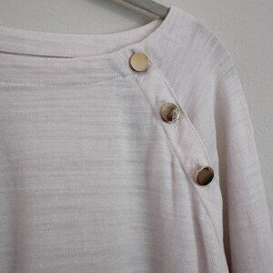 Ann Taylor LOFT Button Trim Long Sleeve Knit Top, Cream, Size Medium
