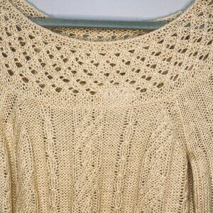 Ann Taylor LOFT Cable Knit Tan Mohair Blend Open Knit Boat Neck Sweater Tunic