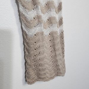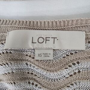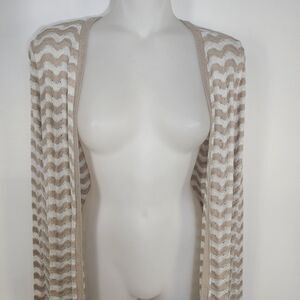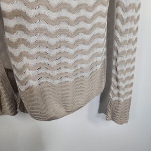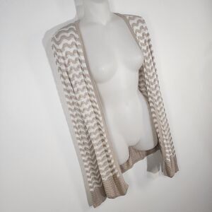 Ann Taylor LOFT Cardigan Sweater XS White Beige Chevron Open Front Open Knit