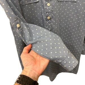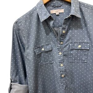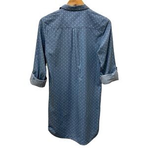 Ann Taylor LOFT Chambray Shirt Dress Polka Dot Popover Roll Tab Sleeve Size XS