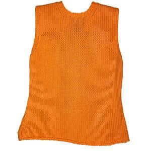 Ann Taylor LOFT Chunky Knit Sweater Vest Sz Lg Orange Wool Blend Rib Tank Top