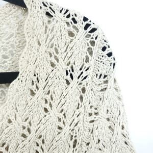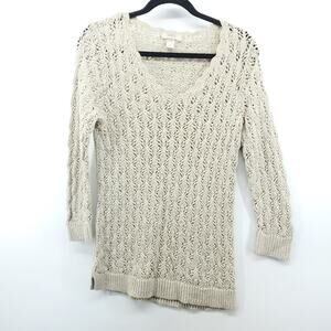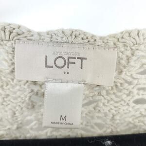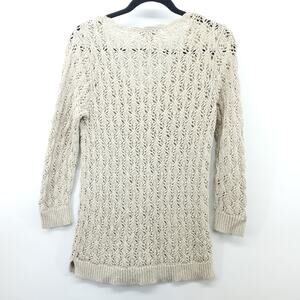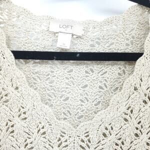 Ann Taylor LOFT Cream Knit Crotchet Sweater Pullover Medium 3/4 Sleeve