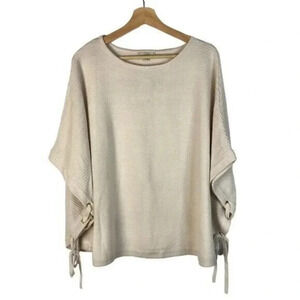 Ann Taylor LOFT Cream Short Sleeve Lace Up Side Poncho Sweater XS/S