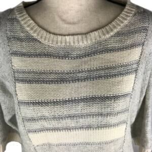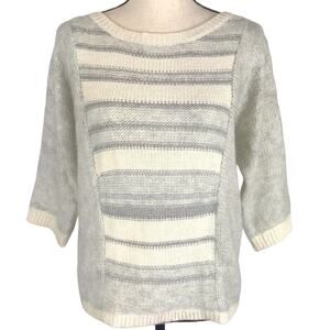 Ann Taylor Loft Scoopneck Sweater Metallic Striped 3/4 Sleeve Cream Gray Silver Womens Size Small
