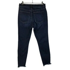 Ann Taylor LOFT Dark Wash Mid Rise Raw Hem Curvy Skinny Jeans 26