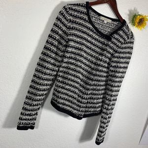 Ann Taylor LOFT Diagonal Zippered Tweed Boucle Knit Zip Up Jacket Size Medium
