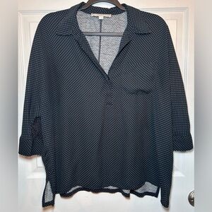 Ann Taylor LOFT Dolman Everyday Boxy Blouse- Black/Blue Dots/ Size Medium