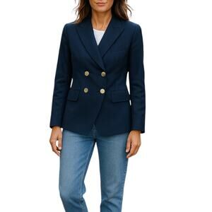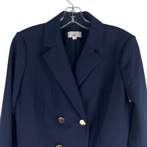 Ann Taylor LOFT Double Breasted Gold Button Blazer Jacket Navy