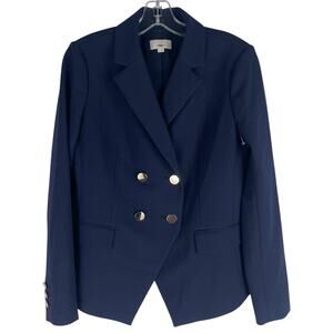 Ann Taylor LOFT Double Breasted Gold Button Blazer Jacket Navy Size 2
