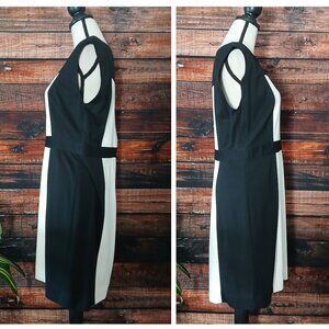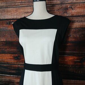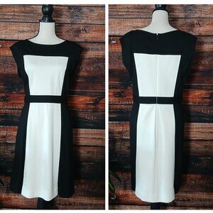 Ann Taylor LOFT Dress Size 10 Sheath Ponte Black White Color Block Zip Back