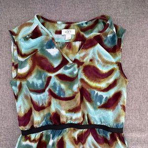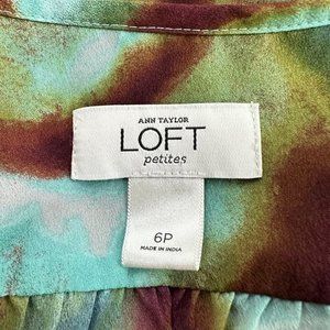 Ann Taylor LOFT Dress V-Neck 6 Petite Pockets Each Side Cinched Waist Sleeveless