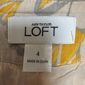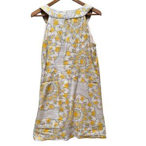 Ann Taylor LOFT Dress Yellow & Gray Floral Linen Shift Sleeveless Summer Size 4