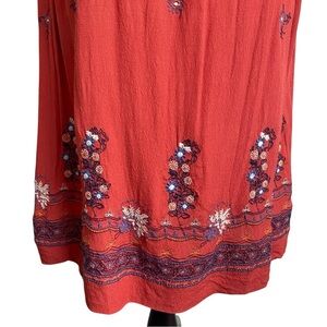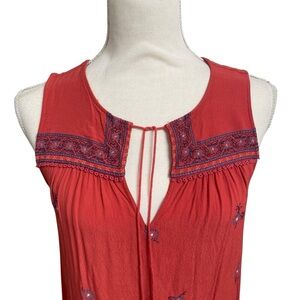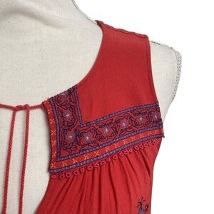 Ann Taylor LOFT Embroidered Brick Red Dress Medium | Boho Tassel Tie Sleeveless