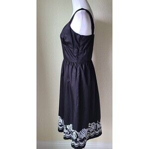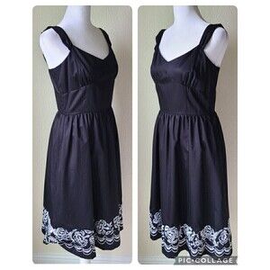 Ann Taylor LOFT Embroidered Sundress Dress 2 Black Floral 50's Straps Fit Flare