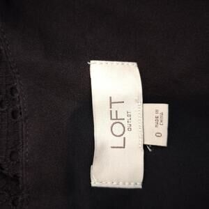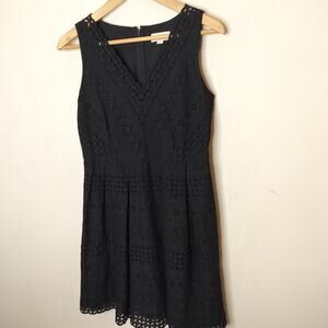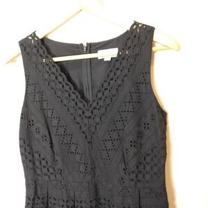 LOFT black eyelet sleeveless pleated dress. Size 0. Zips up the back + lined. 100% cotton. (22986)