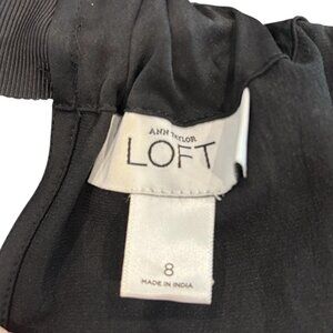 Ann Taylor LOFT Fit & Flare Dress 8 Black Pom Trim Cocktail