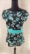 Stylish blouse featuring a floral print with teal accents. Perfect for any occasion.