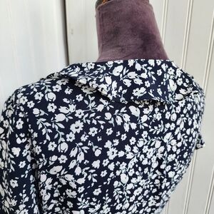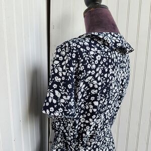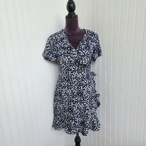 Ann Taylor LOFT Floral Surplice V-Neck Wrap Ruffle Mini Dress Navy White Tie MP