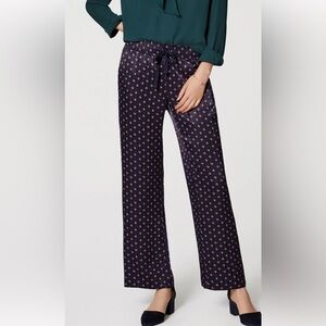 Ann Taylor LOFT Geo Fluid Drawstring Pants Size 4 Navy Color Silky Viscose