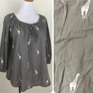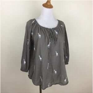Ann Taylor LOFT Giraffe Embroidered Peasant Top NWOT