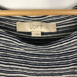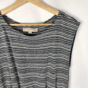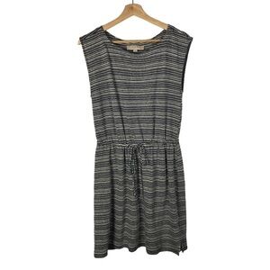 Ann Taylor LOFT Gray Stripe Linen Blend Short Sleeve Knee Length Dress S