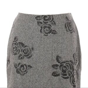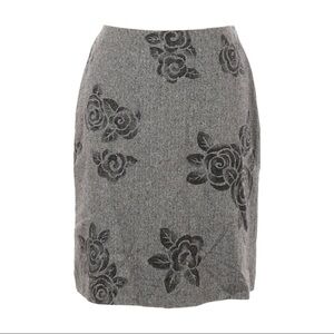 Ann Taylor LOFT Gray Wool Blend Rose Stencil Pencil Skirt 10 Chevron Floral