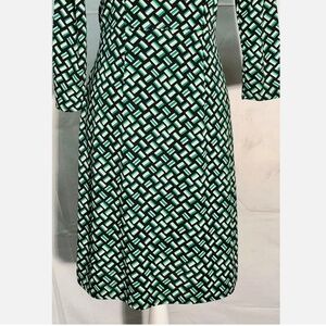Ann Taylor LOFT Green Black Weave Print Knit 3/4 Sleeve Casual Poly Knit Dress~0